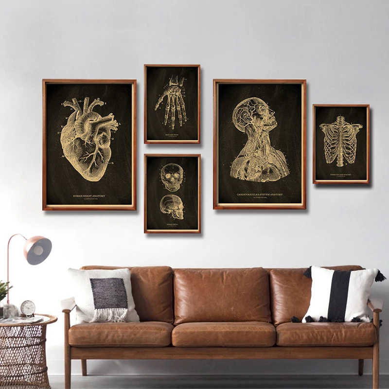 Nostalgic Posters Anatomy Chalkboard Poster Prints Body Parts Heart Hand Foot Drawing Vintage Home Room Art Wall Decor Painting Peckshirt